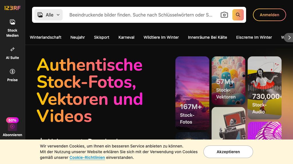 123RF offers royalty-free stock photos, vectors, videos, and audio files across diverse categories. - How does 123RFβs AI-powered search improve content discovery?