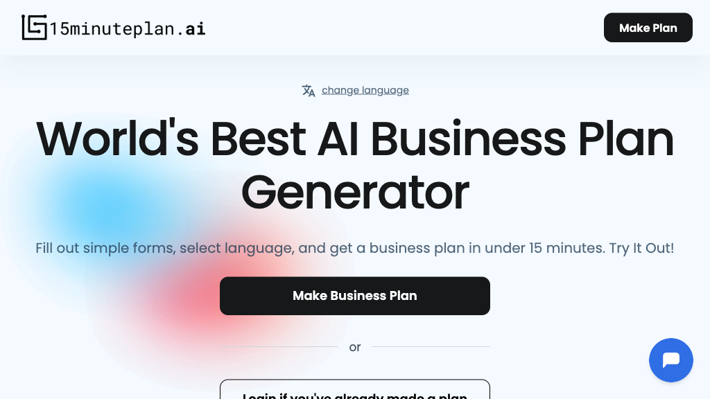 - Rapid AI-Generated Plans: Delivers a full business plan in just 15 minutes using advanced language models.