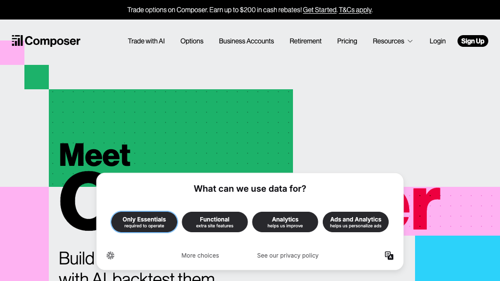 No, Composer provides an AI-assisted, no-code platform that allows anyone to create and customize trading strategies. - What assets can I trade on Composer?