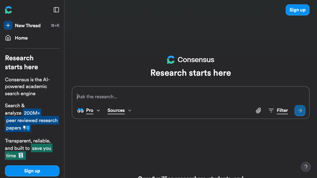 Yes, Consensus offers advanced filters for study design, sample size, population, methodology, and quality indicators to refine results. - Is Consensus free to use?