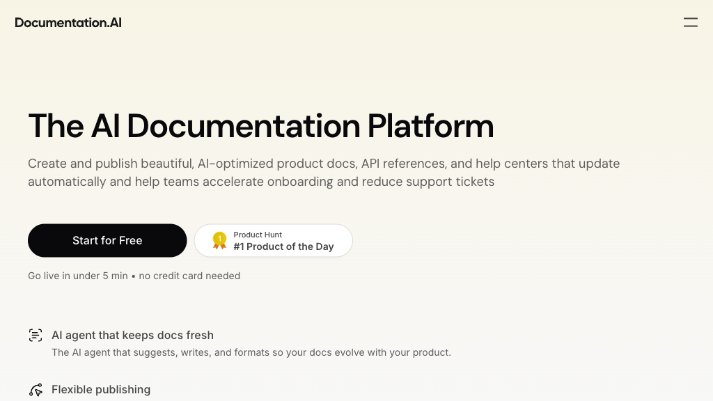Documentation.AI stands out as a comprehensive tool for maintaining dynamic documentation that grows with your product. It effectively bridges the gap between development cycles and documentation needs while offering powerful integrations for tech-savvy teams. However, initial familiarization may require some time investment.