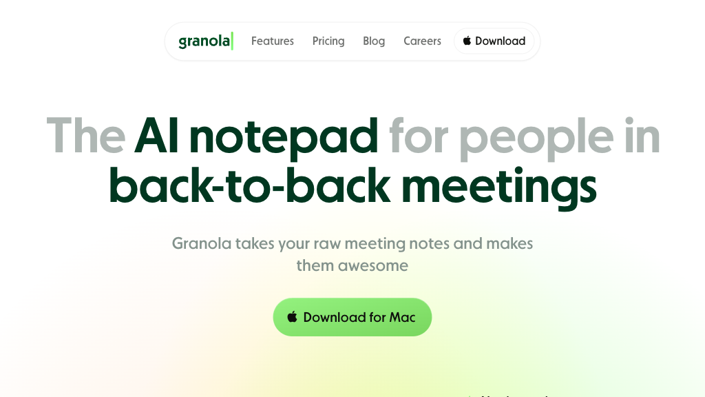 Granola AI is a notepad app for Mac that transcribes and summarizes meetings without bots, ideal for busy professionals needing efficient documentation.