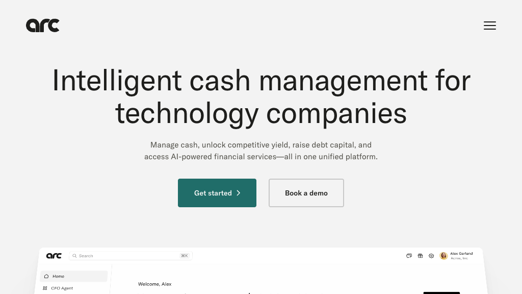 Arc is a fintech platform offering cash management and capital market solutions for startups and private investors, enhancing financial operations.