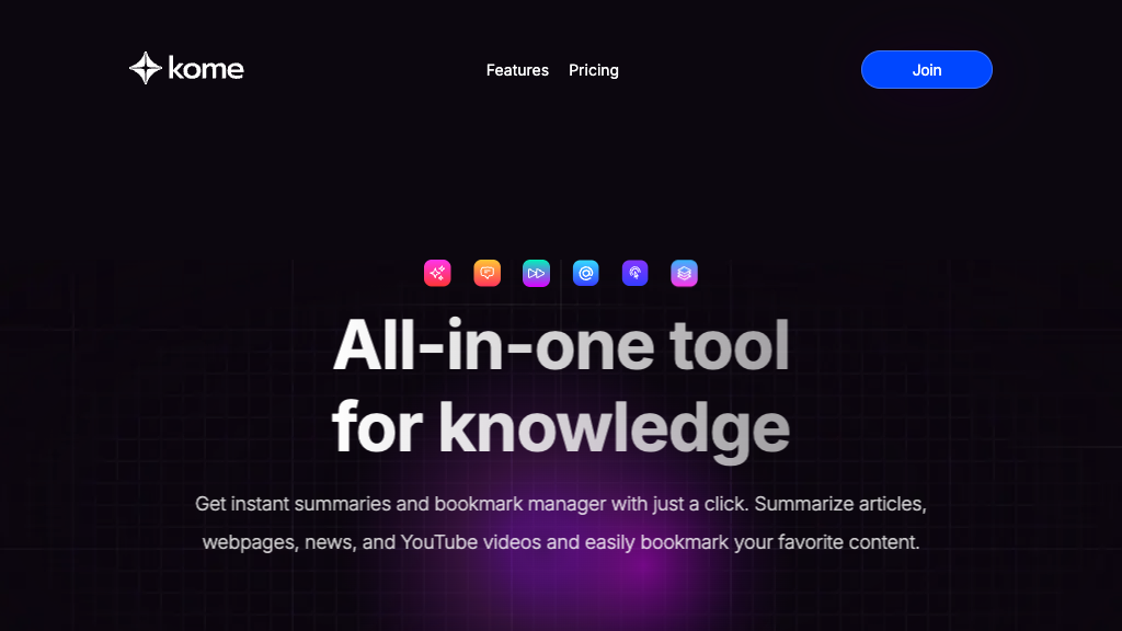 Kome AI effectively caters to those needing streamlined online content consumption. Its summarization and bookmarking features are particularly useful for researchers and content creators. While the free version suffices for basic needs, upgrading might be necessary for full functionality. Overall, it's a practical tool for enhancing productivity in digital environments.