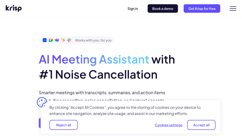Yes, Krisp cancels background noise from your microphone and incoming audio from other participants for clear communication. - Does Krisp offer meeting transcription and note-taking?