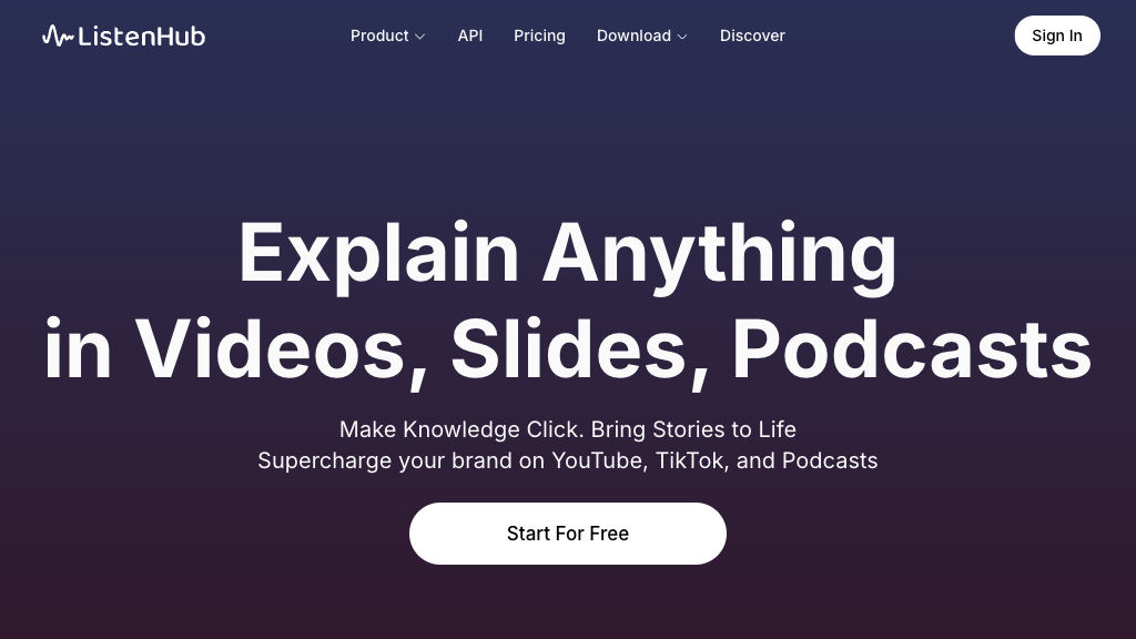 ListenHub transforms written content into podcasts, supporting English and Chinese. Ideal for content creators and language learners seeking realistic audio.