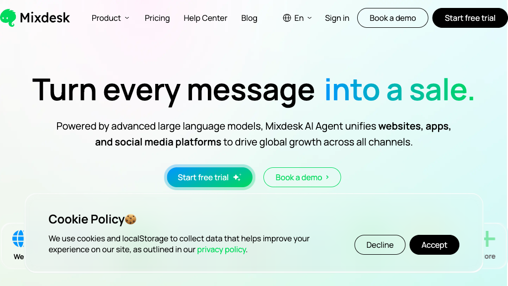 A free trial is available, allowing potential users to explore Mixdesk's features before deciding on a subscription plan.