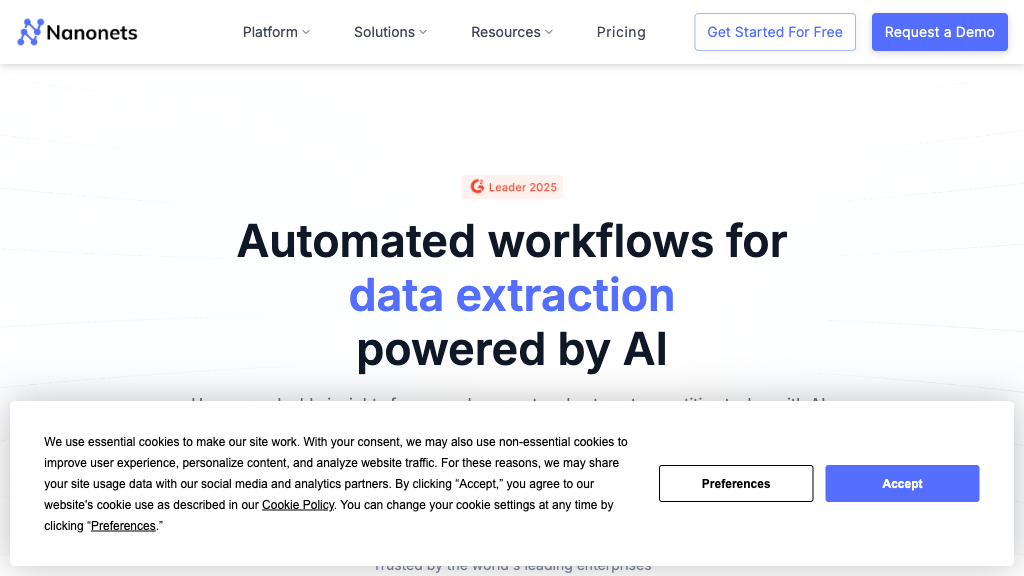 AI platform Nanonets automates document processing and data extraction, ideal for businesses seeking efficient workflow management.