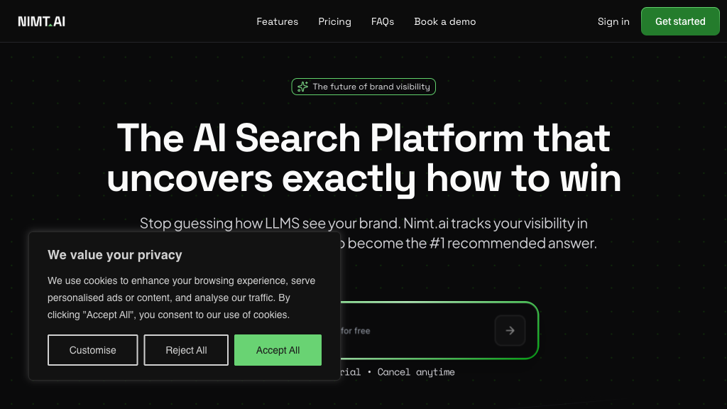 Nimt.ai effectively supports brands seeking to enhance their presence within the evolving landscape of AI-driven searches. While offering comprehensive features for strategic insights into brand positioning against competitors, the platform requires some adjustment from traditional SEO practices but remains a valuable tool for forward-thinking marketers.