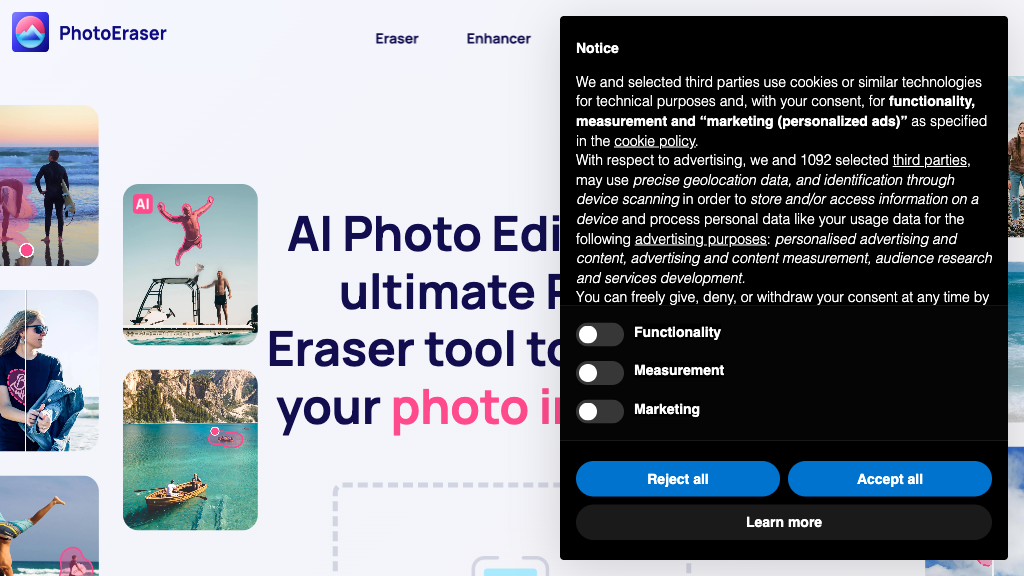 Summary Photo Eraser provides an intuitive platform for editing images by removing unwanted objects and reconstructing backgrounds seamlessly. It leverages advanced AI technology to deliver high-quality photo edits with minimal effort. The app is suitable for both hobbyists and professionals looking to enhance their photos.